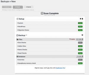 Duplicator now scans the site and determines if there are any issues that need to be handled. At the end there should be a screen like this.