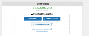The backup is complete and Duplicator now gives you the option to download the two main backup components, download the installer.php and the archive file and put them somewhere safe, we’ll pick these up later.