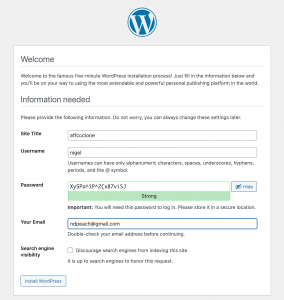 And once that’s successful, we’ve got a working wordpress instance.