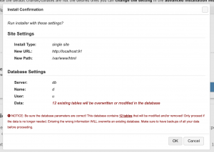 There may be warnings about the character set, ignore this. Finally, there’s a last check that you’re good to do this, as it’ll overwrite all the tables in the db.